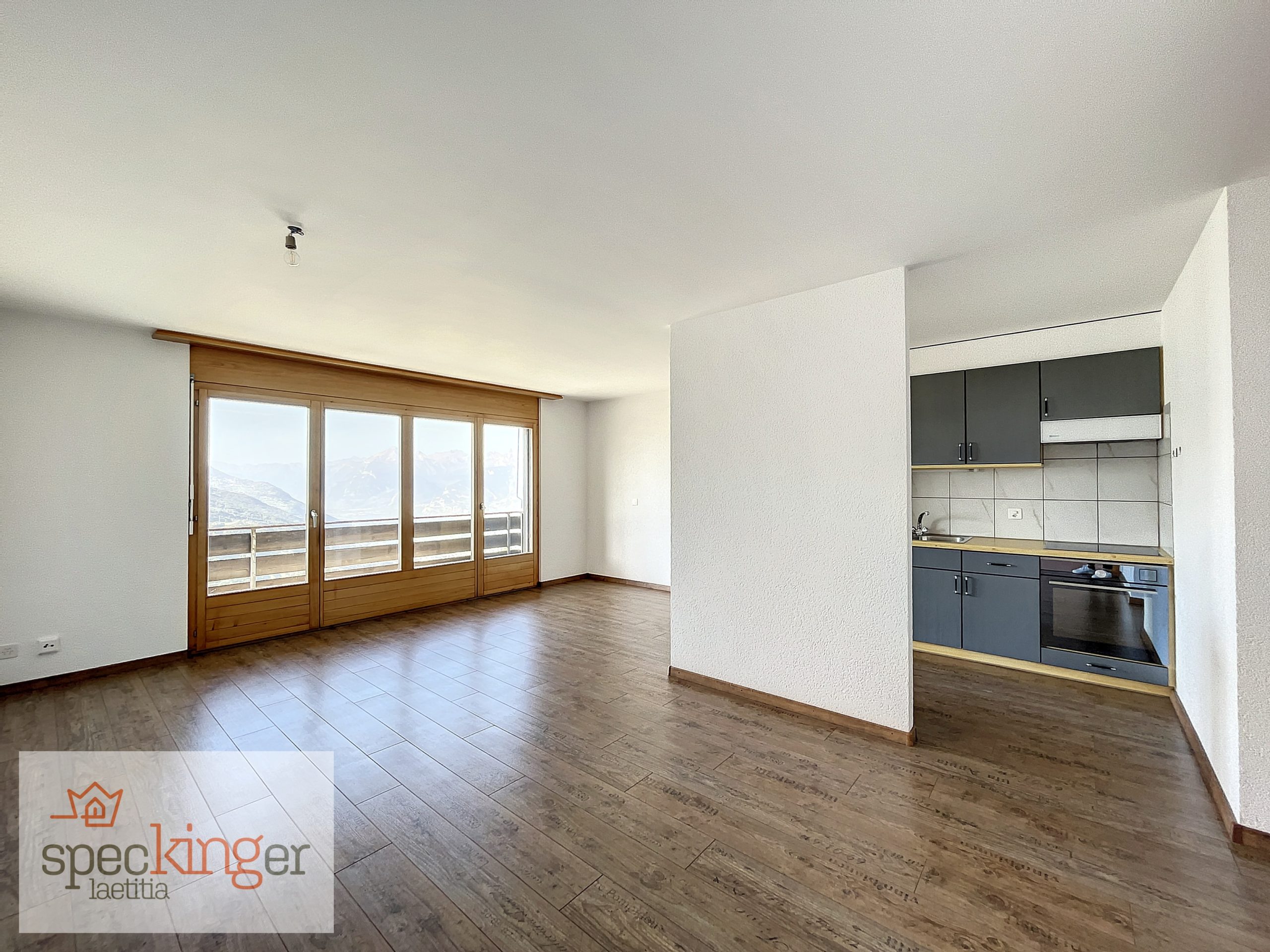 Il dispose d’une entrée avec placards, d’une belle pièce de vie avec cuisine ouverte, équipée et aménagée, baignée de lumière grâce aux grandes fenêtres donnant accès au grand balcon sud et à sa superbe vue imprenable sur la vallée du Rhône et ses montagnes.