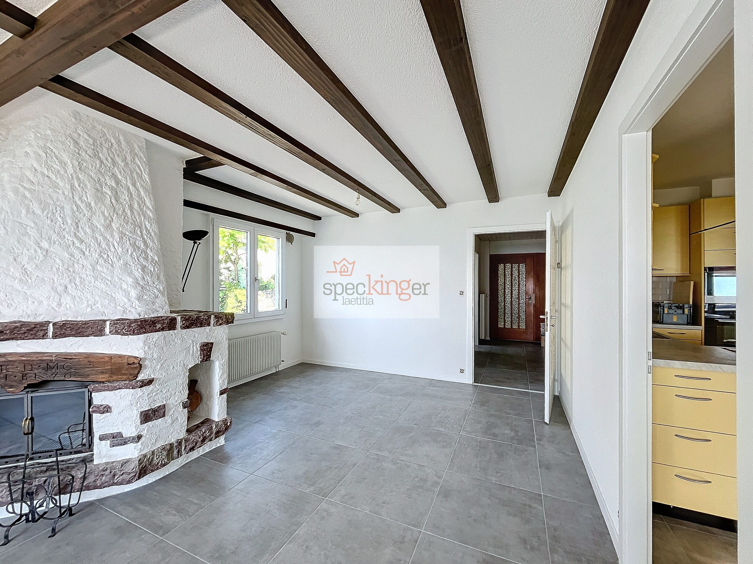 Dès votre entrée, vous serez accueilli par un hall chaleureux qui vous guide vers un salon-salle à manger avec cheminée, idéal pour les moments de convivialité en famille ou entre amis.